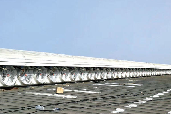 紡織廠車間機器多,工作時散發(fā)出大量的熱量,引發(fā)紡織廠車間高溫、悶熱,而且飛毛過多,空氣污濁,嚴(yán)重影響員工的身體健康。因此,紡織廠采用了本公司研發(fā)制造的紡織車間降溫設(shè)備(負(fù)壓風(fēng)機和降溫水簾)來改善車間現(xiàn)存的高溫悶熱、飛毛亂飛的情況,讓空氣迅速對流交換,使新鮮的空氣源源不斷的流入室內(nèi),從而為車間創(chuàng)造一個涼…